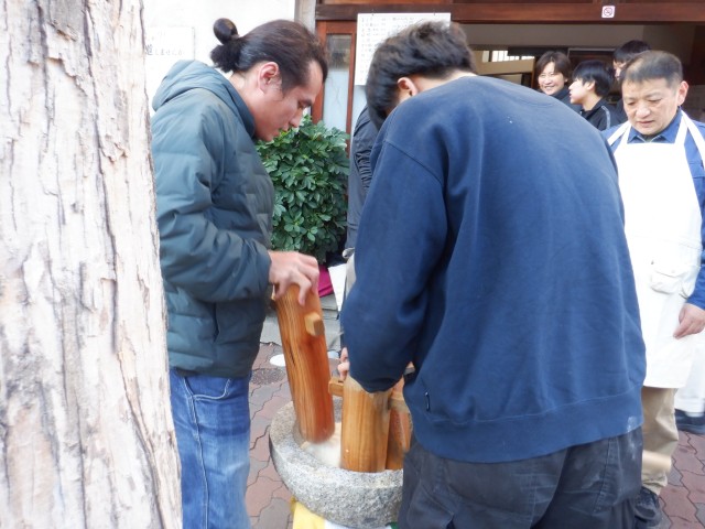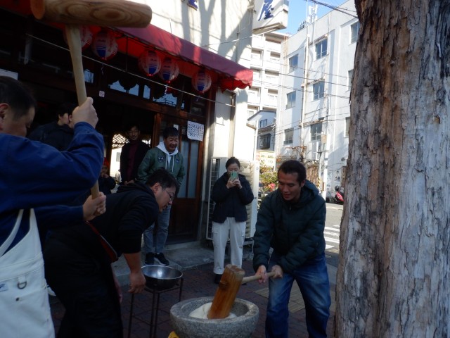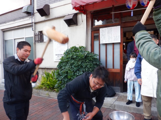 ベトナムからのwが初参加。餅を「へっぴり腰」で搗いて、日本の正月「前哨